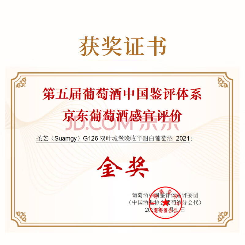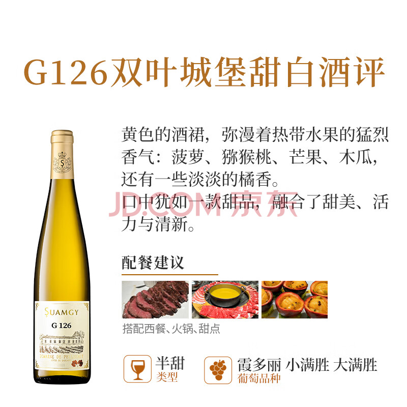 商品相册:圣芝(suamgy)G126双叶城堡老藤晚收半甜白葡萄酒750ml 单瓶装 法国原瓶进口第