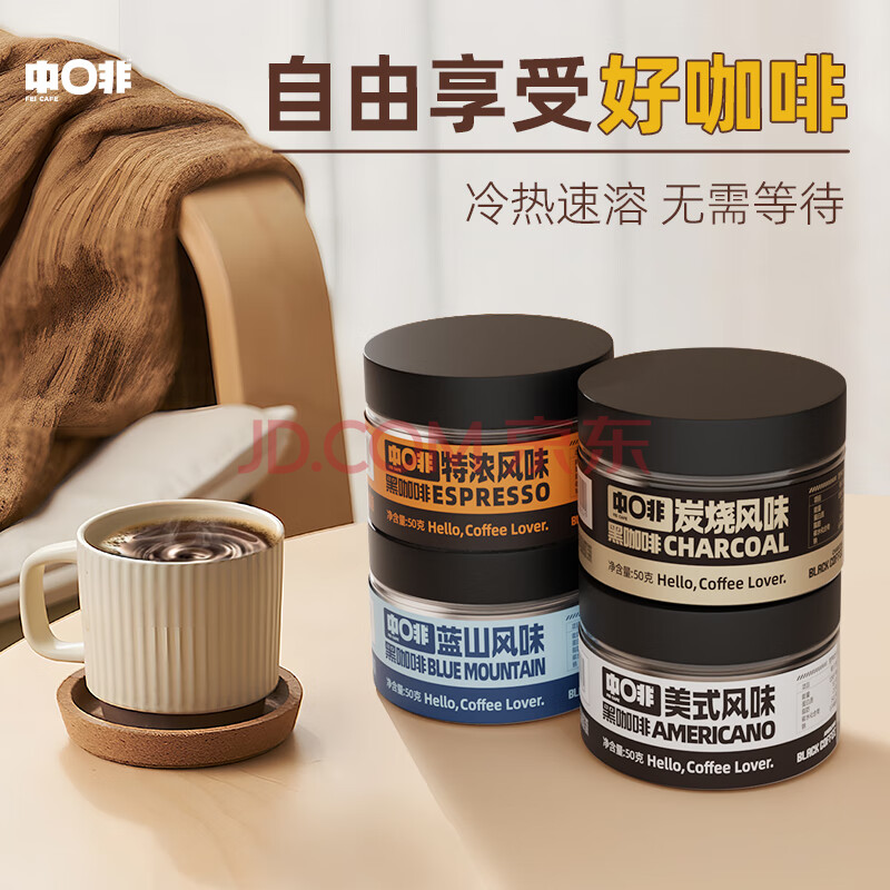 商品相册:中啡黑咖啡 美式蓝山意式炭烧咖啡礼盒装50g*4罐 速溶咖啡第
