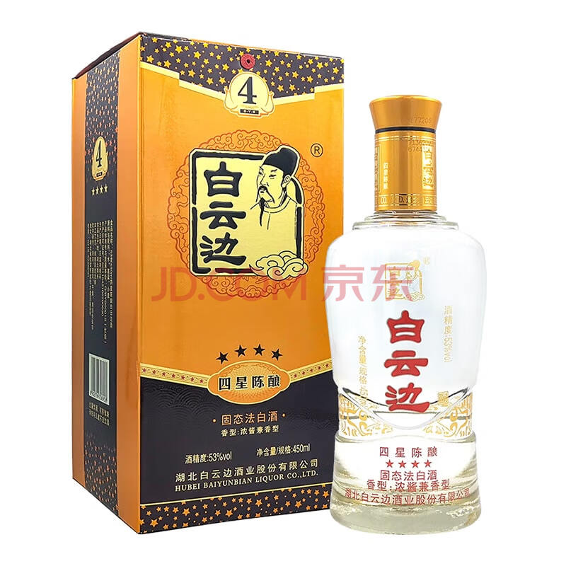 商品相册:白云边四星陈酿 浓酱兼香型白酒 53度 450ml 单瓶装 热门白酒第