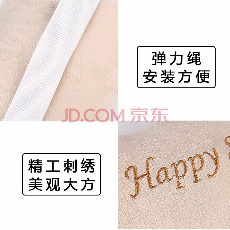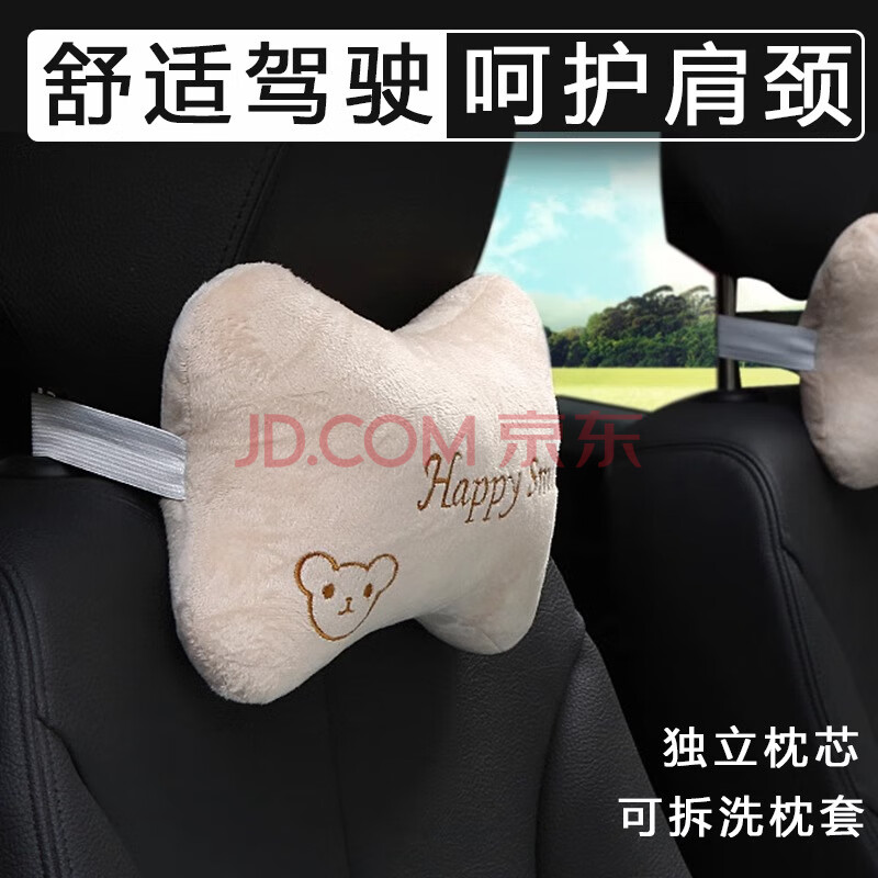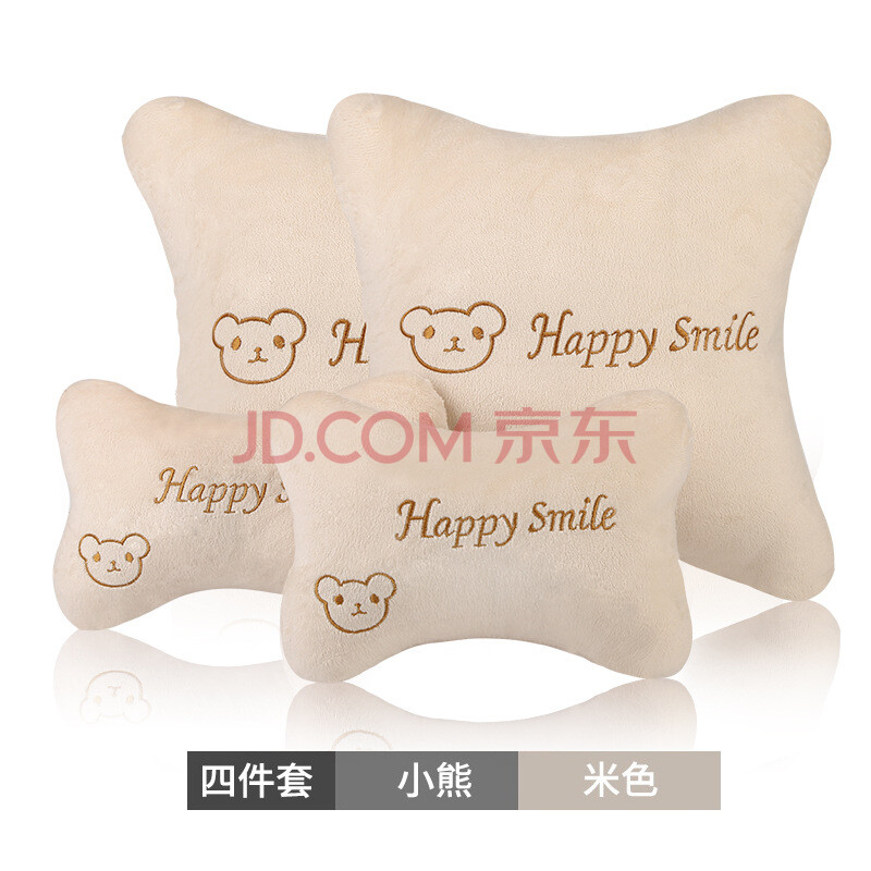 商品相册:华饰 汽车腰靠头枕套装车用座椅卡通头枕腰靠刺绣款4件套-小熊米色第