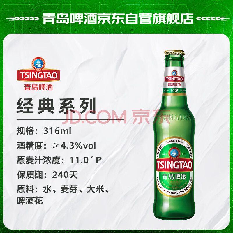 商品相册:青岛啤酒(TsingTao)经典啤酒 316ml*24瓶 整箱装踏春送礼第