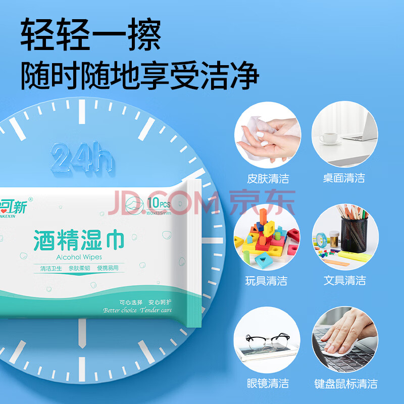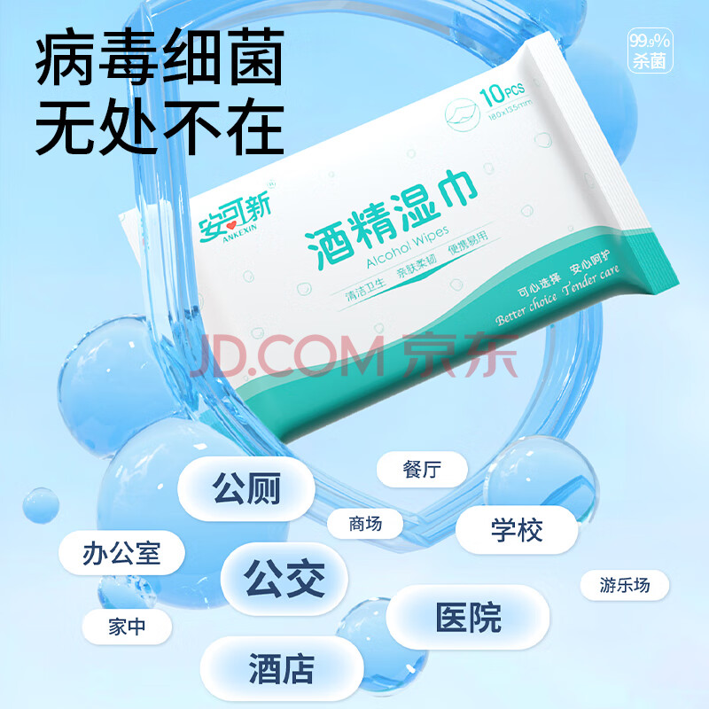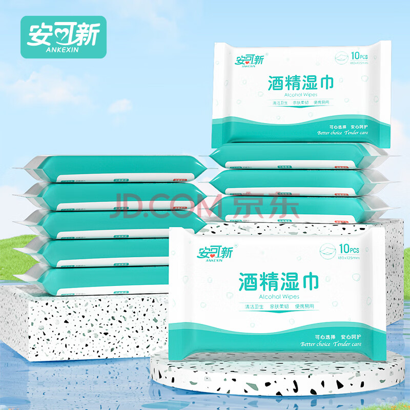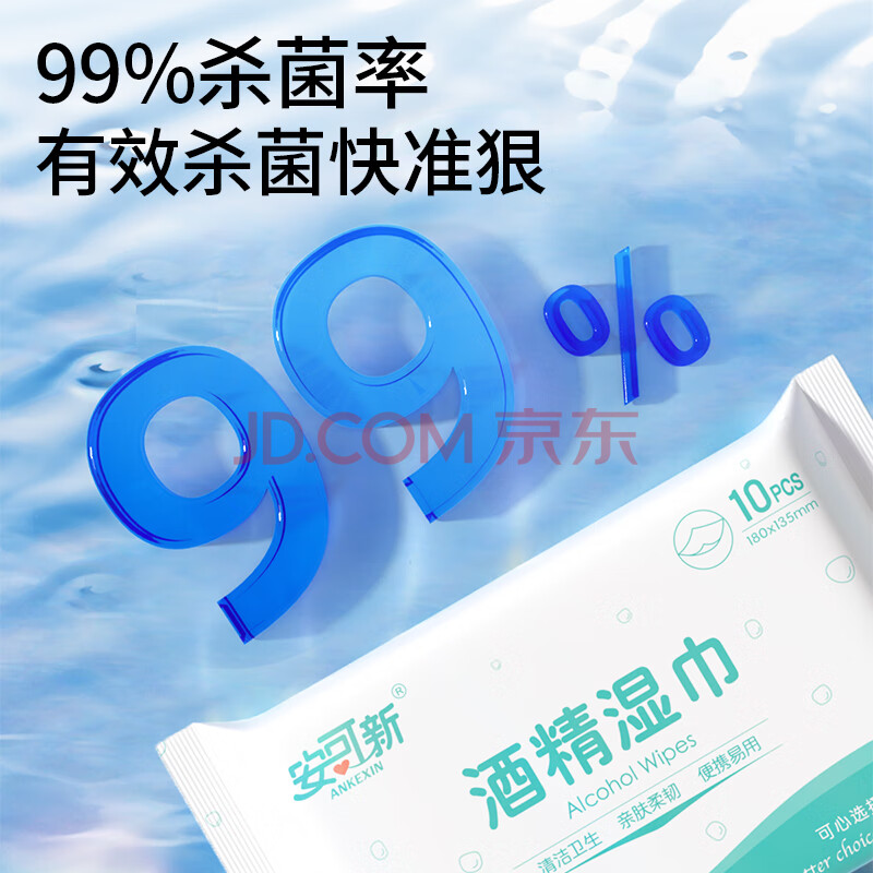 商品相册:安可新 75%酒精湿巾10片*20包 杀菌湿纸巾杀菌儿童上学开学小包便携装 第
