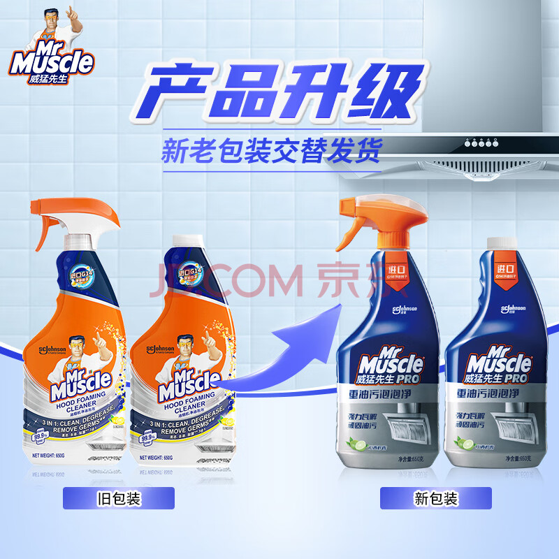 商品相册:威猛先生(Mr Muscle)油污清洁剂 油烟机净油泡泡650g*2小青柠香G14净油因子高效3合1 第