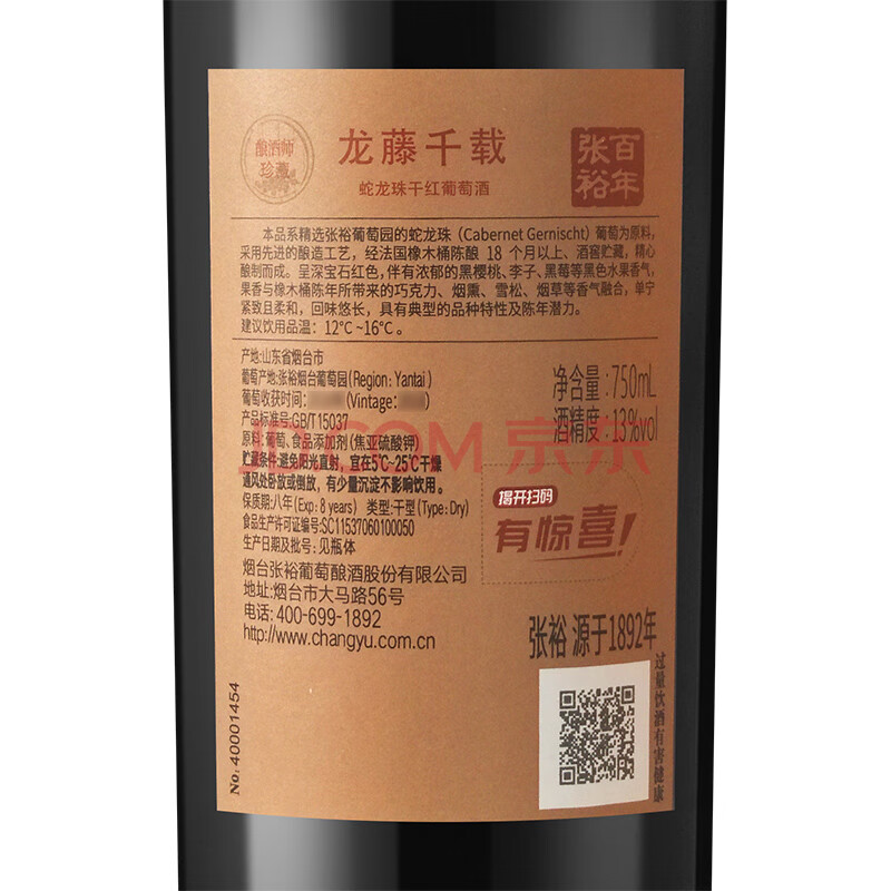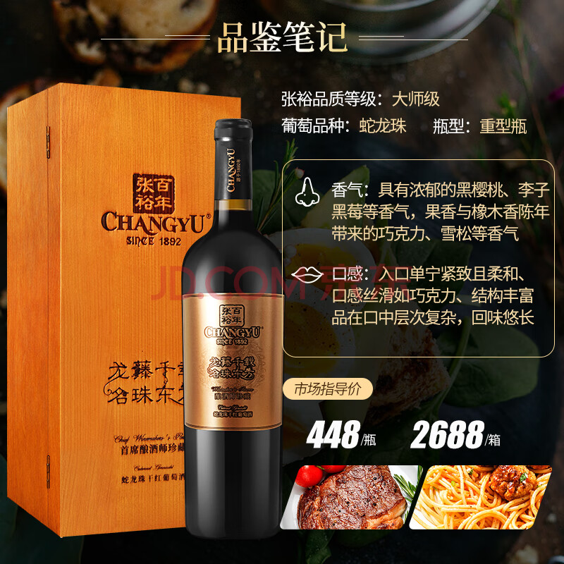 商品相册:张裕旗下龙藤名珠首席酿酒师蛇龙珠干红葡萄酒750ml*6整箱第