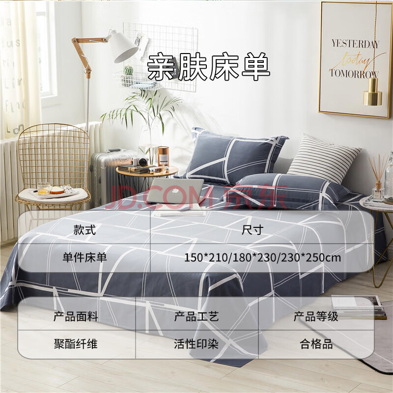 商品相册:艾薇 A类水洗棉磨毛床单单件 双人家用被单床单 格调时代 230*250cm第