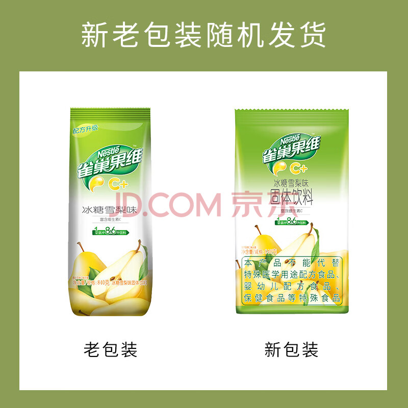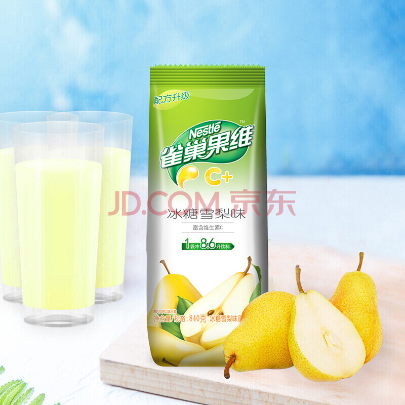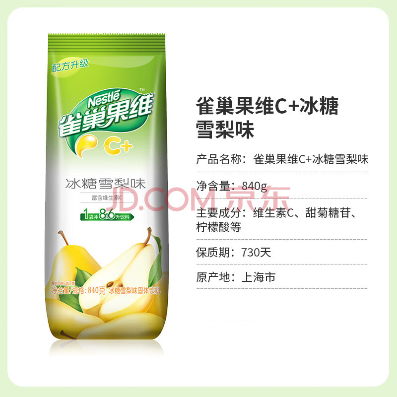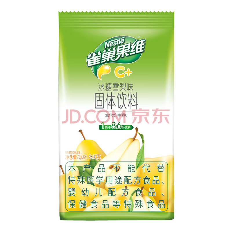 商品相册:雀巢(Nestle)果维C+冰糖雪梨味840g/袋 富含维C 低脂果珍冲饮果汁粉第