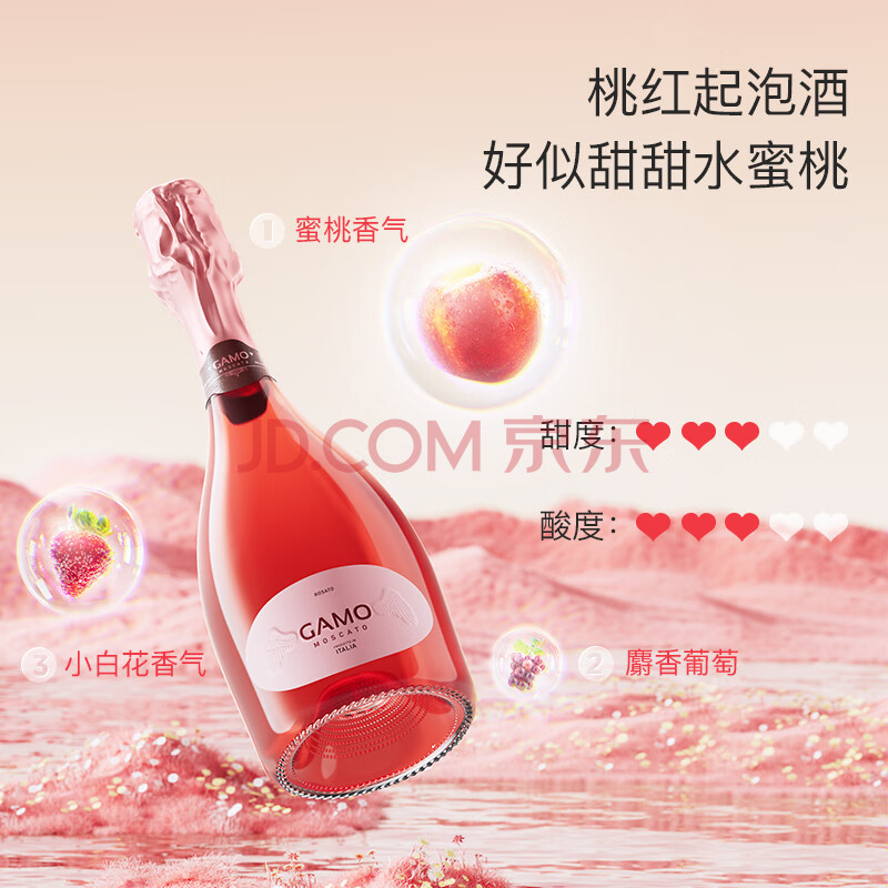 商品相册:卡伯纳意大利原瓶进口卡摩莫斯卡托桃红起泡气泡葡萄酒果酒整箱热门送礼第