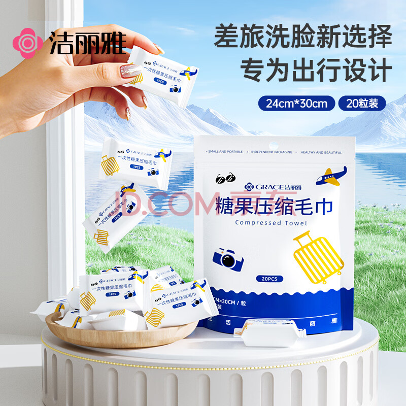 商品相册:洁丽雅一次性糖果压缩毛巾20粒加厚加大洗脸巾旅行便携 24*30cm 20粒装第