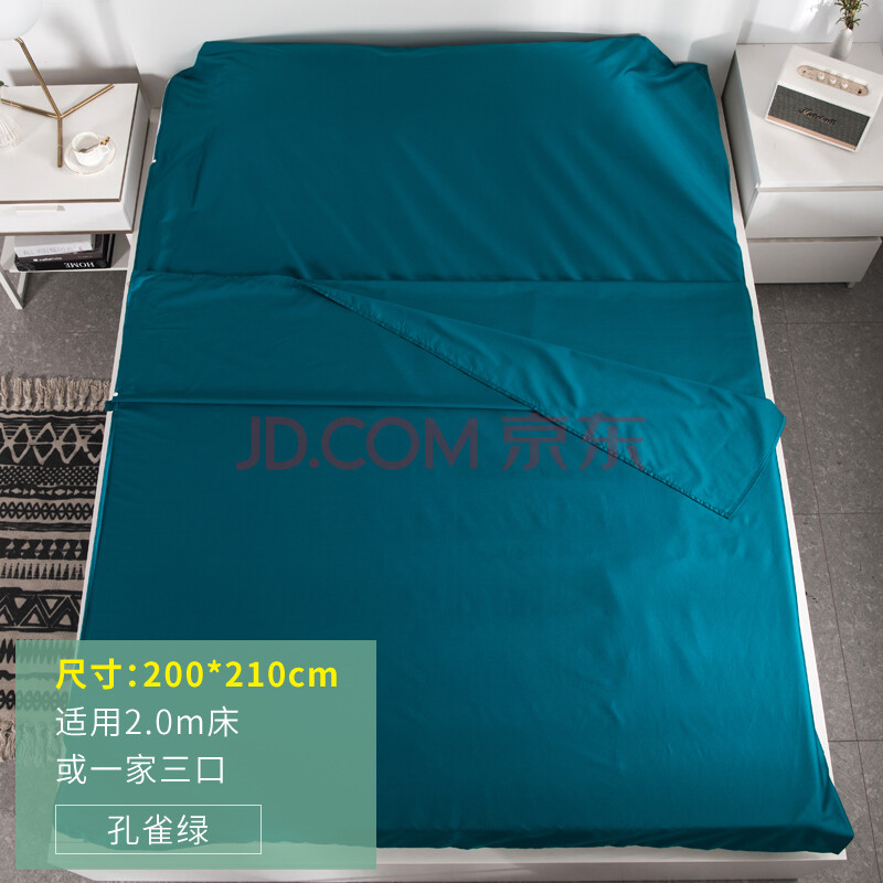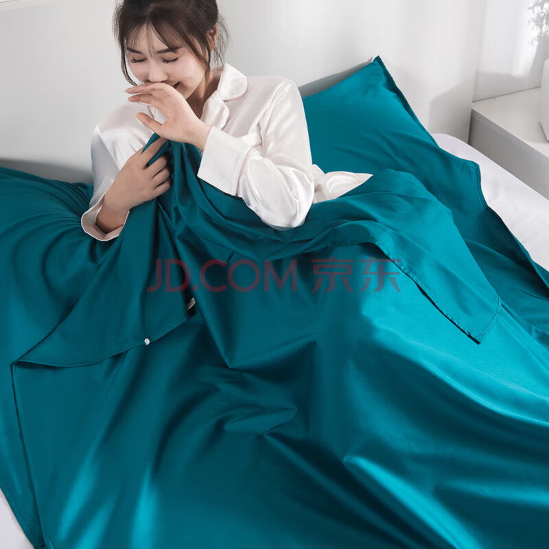 商品相册:欣沁睡袋旅行隔脏床单60支贡缎酒店防脏床罩加宽便携 孔雀绿120*210cm第
