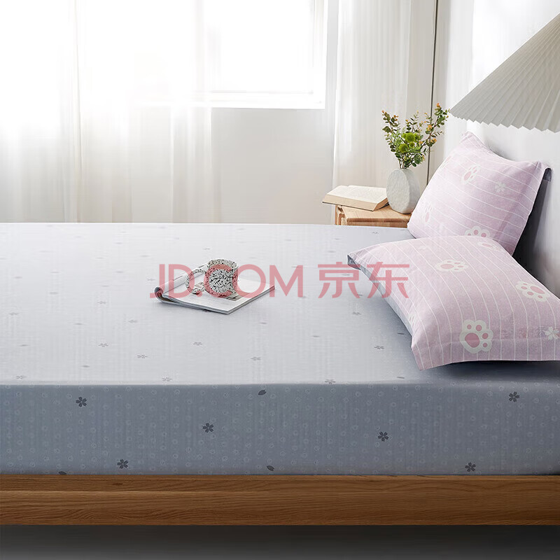 商品相册:罗莱家纺 纯棉床笠单件床罩床盖 樱花猫爪 灰色1.8米床180*200第