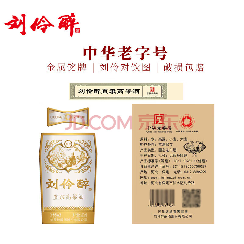 商品相册:刘伶醉 直隶高粱酒金属标 浓香型白酒 52度 500ml*6瓶 整箱装 过年送礼第