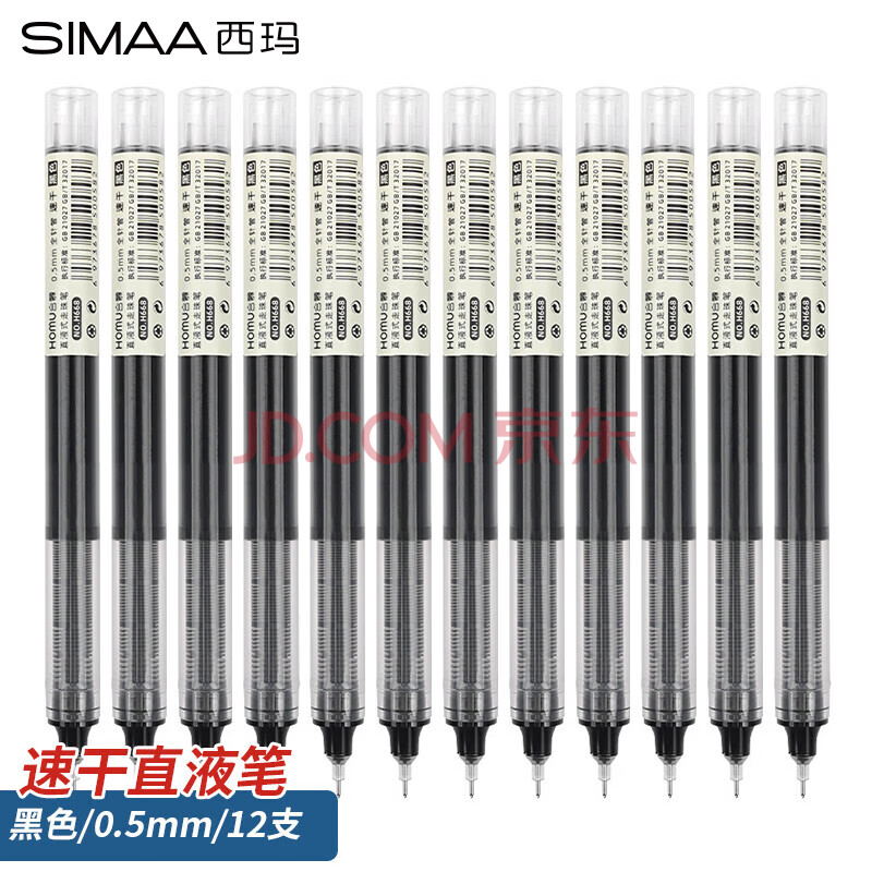 商品相册:西玛(SIMAA)12支装直液式中性笔0.5mm全针管大容量速干学生考试专用水笔签字笔21524第