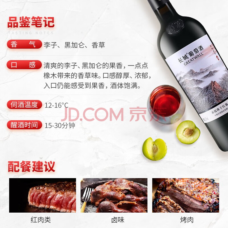 商品相册:长城画廊伍号赤霞珠干红葡萄酒 750ml*6瓶整箱装 国产好酒第
