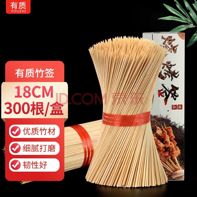 商品相册:有质 烧烤竹签 18cm竹签【300支】 家用羊肉烤串户外烧烤工具配件第