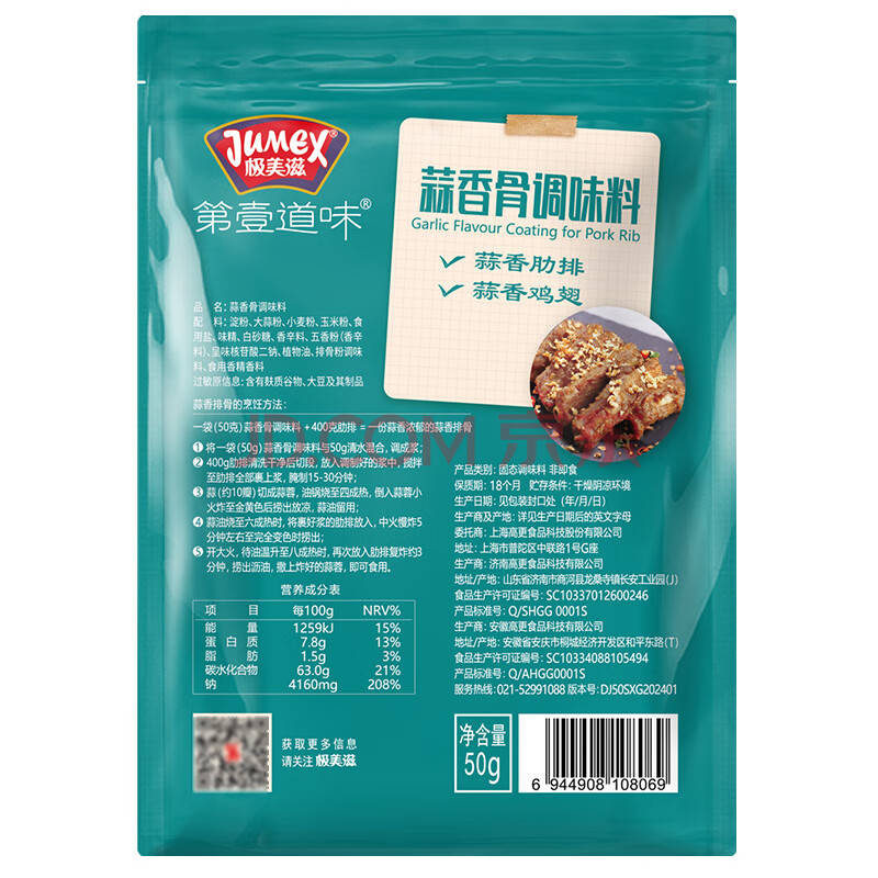 商品相册:极美滋蒜香排骨调料50g*3袋 腌料调味料裹粉煎炸粉佐料烧烤配料第