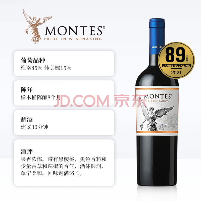 商品相册:MONTES蒙特斯经典梅洛红酒葡萄酒750ml日常婚礼商务宴请智利原瓶进口第