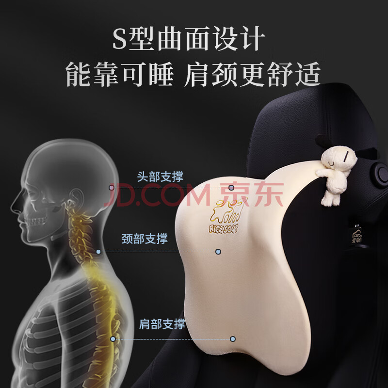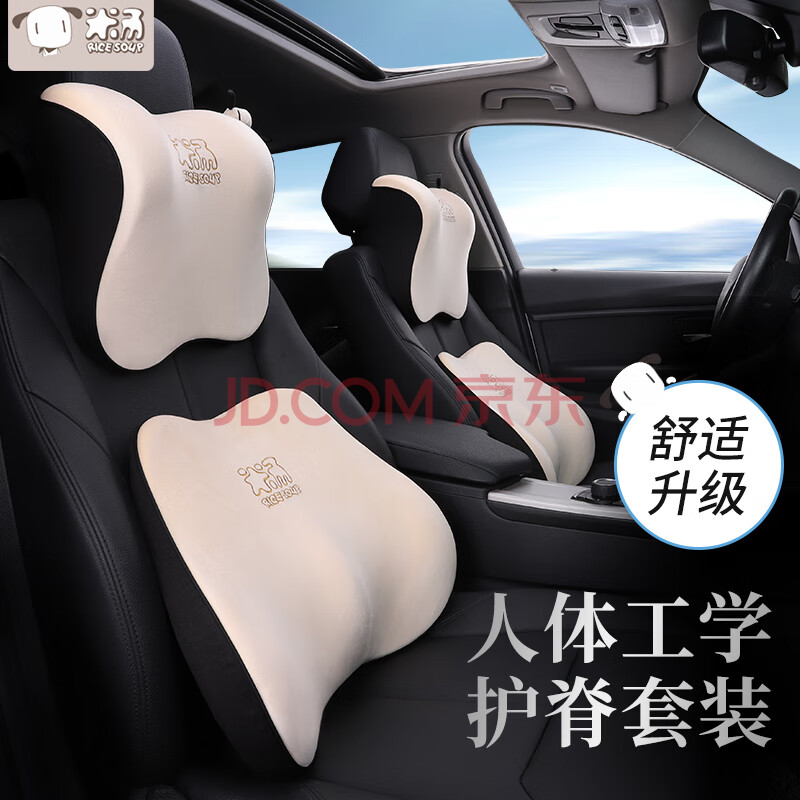 商品相册:米汤(rice soup)汽车头枕腰靠套装记忆棉车用枕头护颈枕靠枕靠垫T-662M+632M-B第