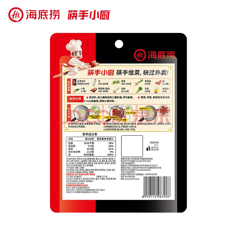商品相册:海底捞筷手小厨调味料 水煮肉片调味料100g 家常川菜炒菜水煮肉片调味料第