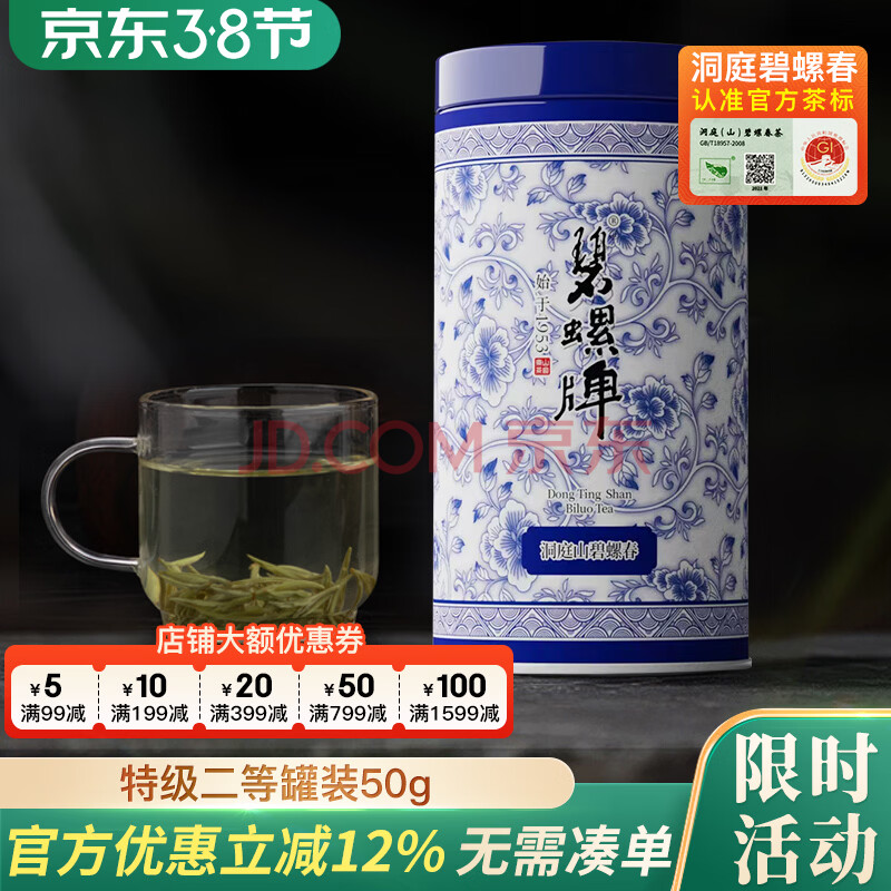 商品相册:碧螺2026年春茶绿茶青花苏州洞庭碧螺春特级二等50g明前新茶罐装第