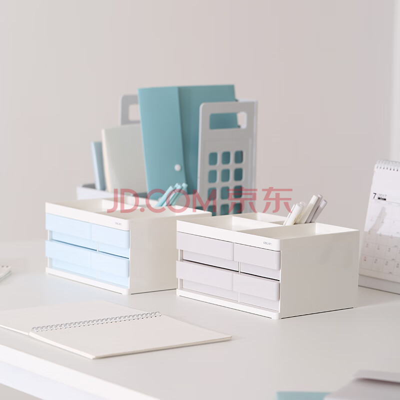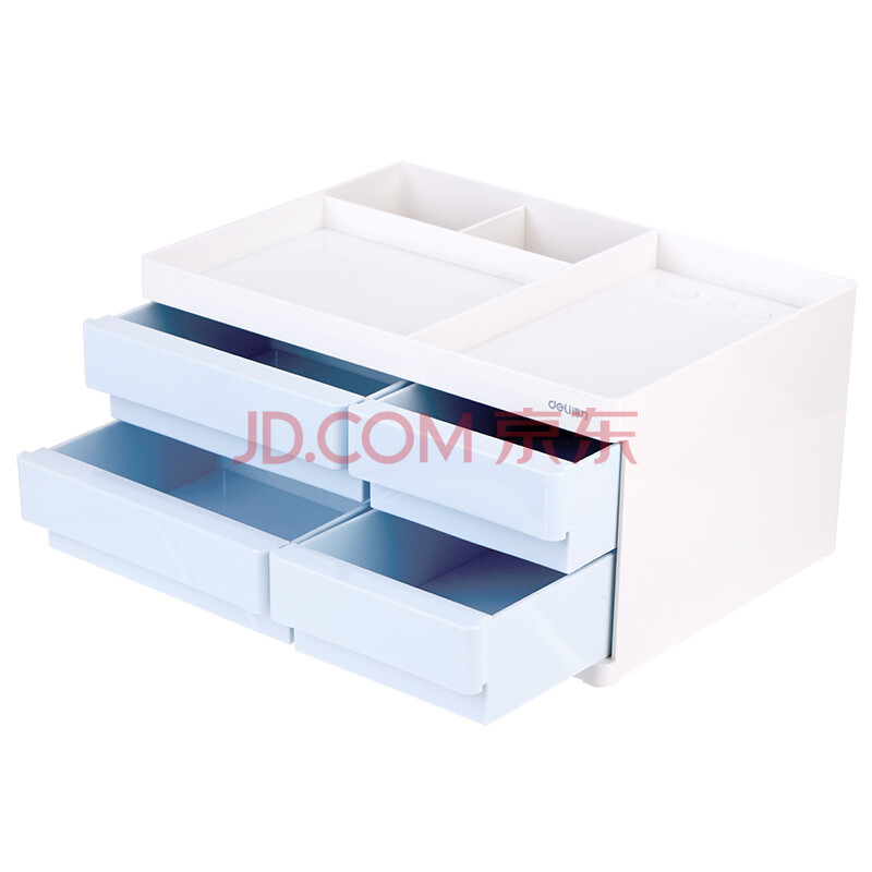 商品相册:得力(deli)8904 多功能桌面小清新收纳盒 带抽屉组合式票据储物盒 浅蓝 单个装第