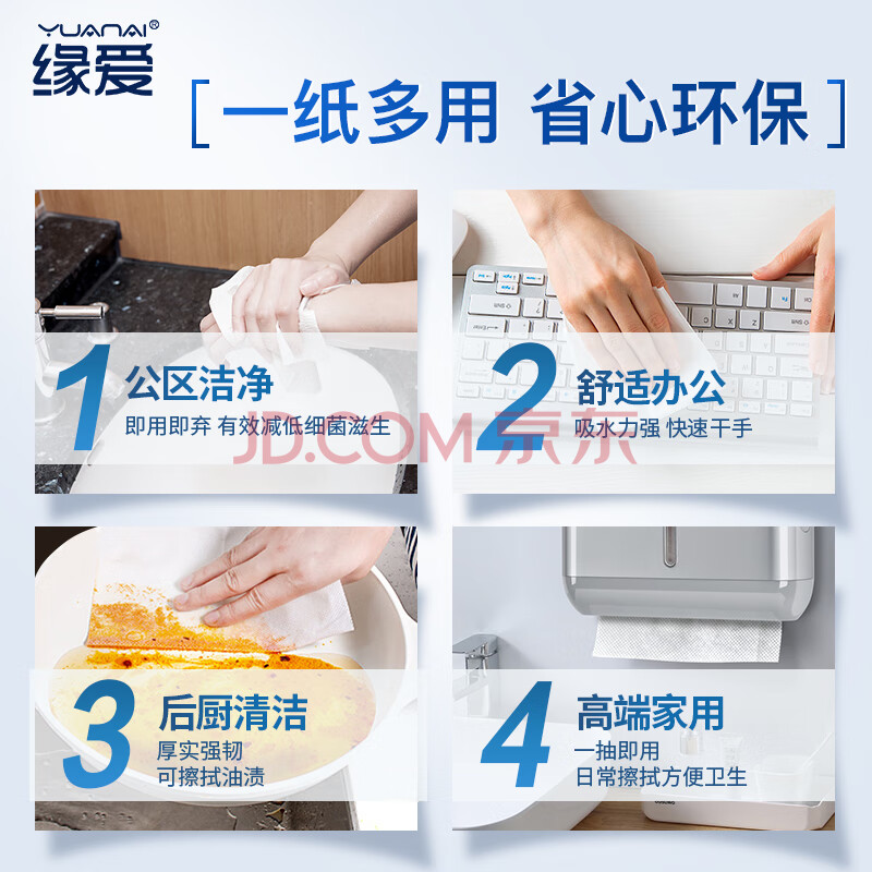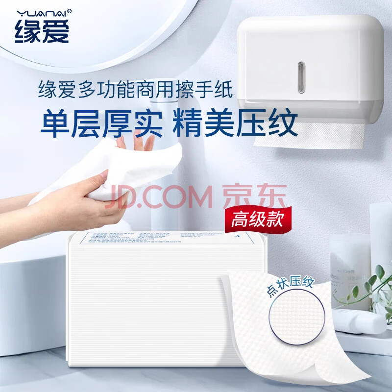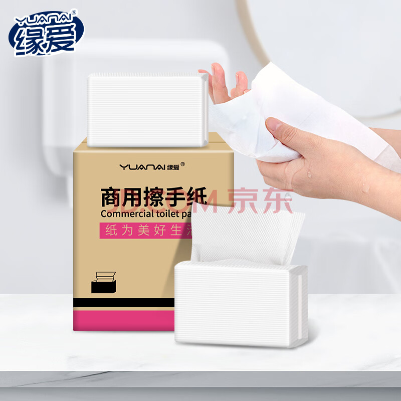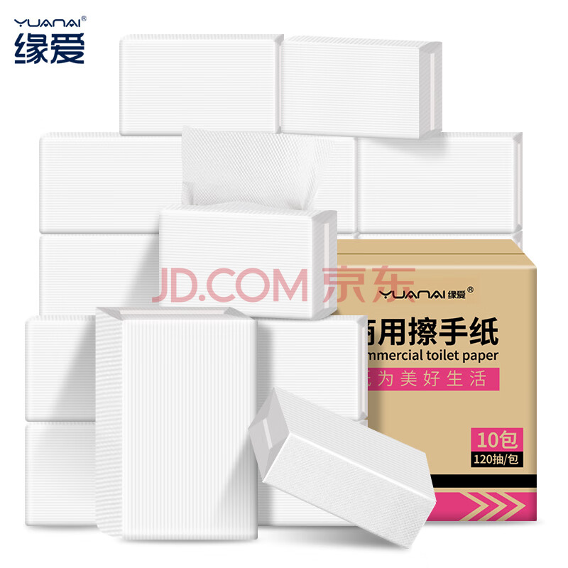 商品相册:缘爱擦手纸1层120抽*10包商用抽纸厨房纸巾干手纸抹手纸独立包装整箱第