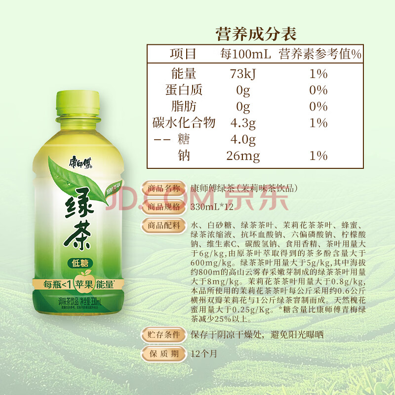 商品相册:康师傅 绿茶 低糖茶饮料 小瓶整箱装 330ml*12瓶 热门商品第