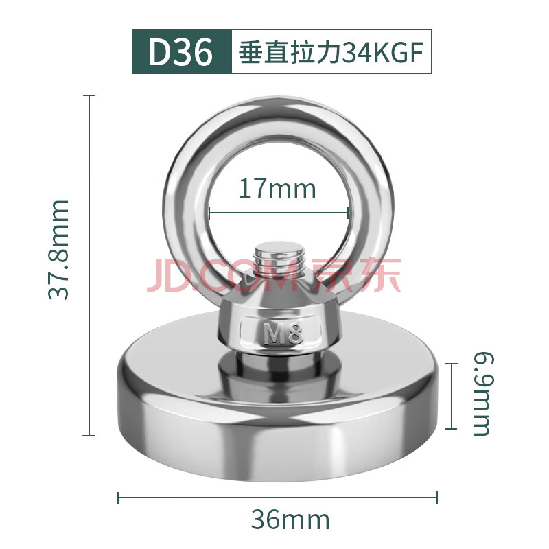 商品相册:优必利 磁扣强磁吸铁石 打捞磁铁吊环磁钉圆形磁钉磁铁强力磁石 拉力<22kg D36第