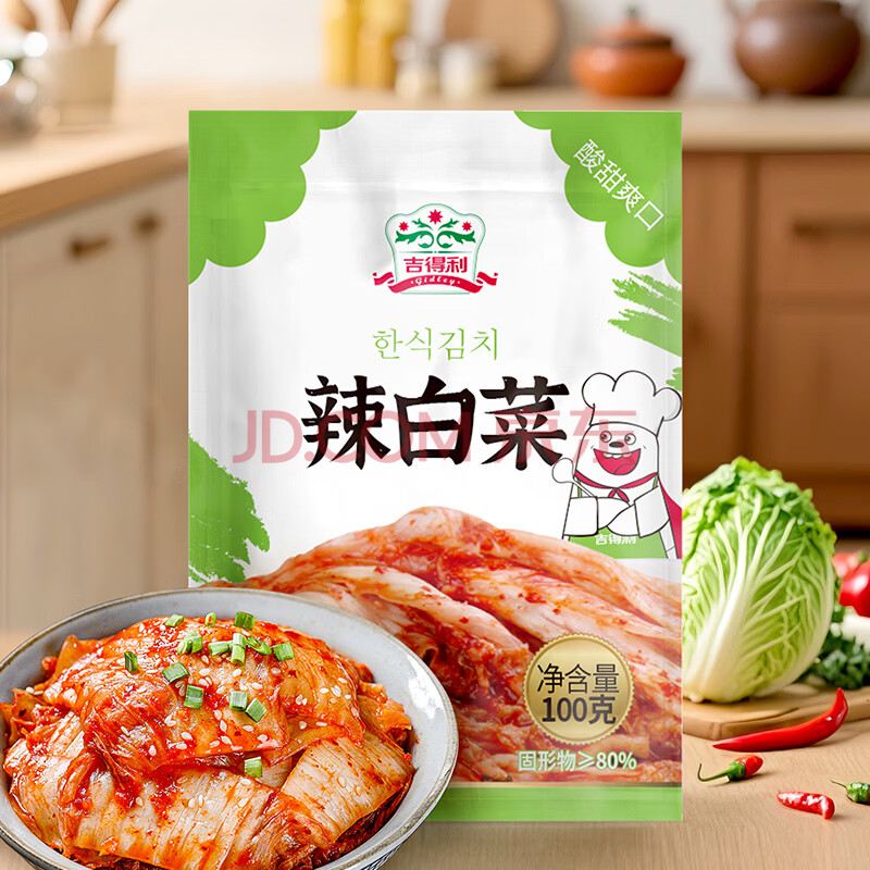商品相册:吉得利韩式辣白菜泡菜100g*6 袋 即食下饭菜咸菜酱菜第