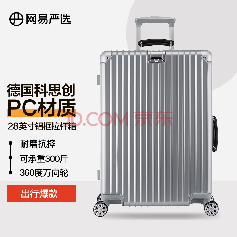 商品相册:网易严选大容量铝镁框小金刚PC行李箱商务拉杆箱旅行箱28英寸亮面太空银第