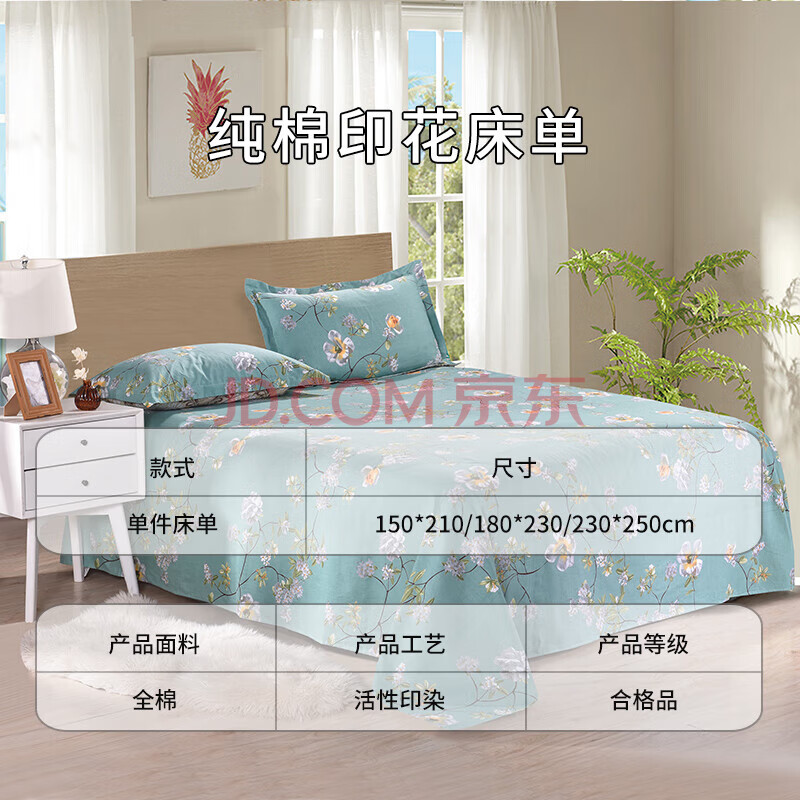 商品相册:艾薇 A类全棉床单单件纯棉双人床单被单田园风床单 青馨花园230*250cm第