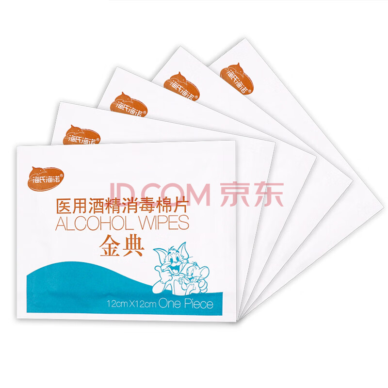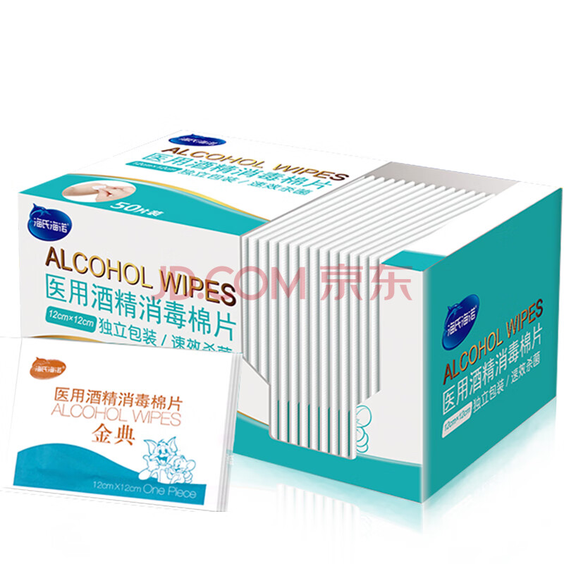 商品相册:海氏海诺 75%酒精棉片 大尺寸一次性酒精棉 12*12cm*50片/盒 便携消毒湿巾单片独立包装 整箱装(40盒/箱)第