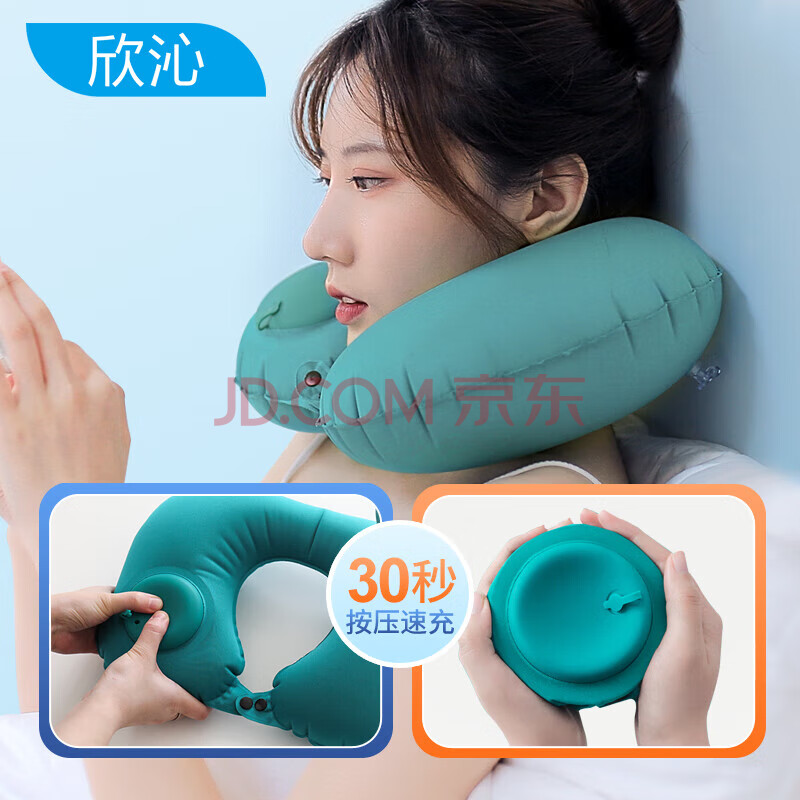 商品相册:欣沁旅行出差按压充气颈枕 便携护颈枕午睡U型枕头机火车汽车户外用品第