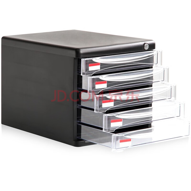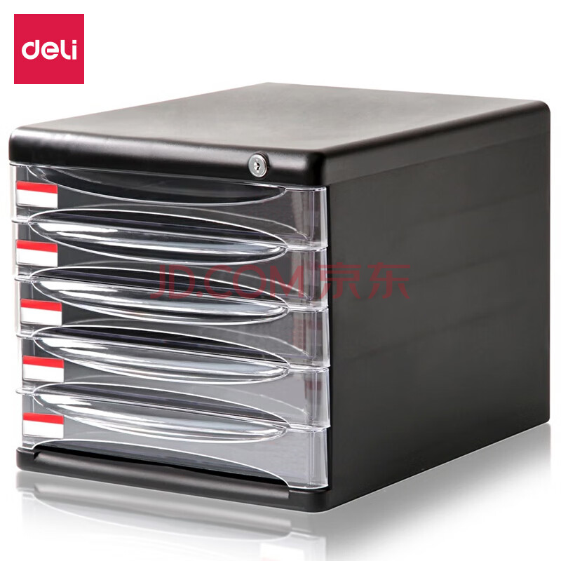 商品相册:得力(deli)9795五层文件柜 带锁手拉桌面文件柜 带索引标签抽屉资料收纳柜 办公用品 黑色 ZY第