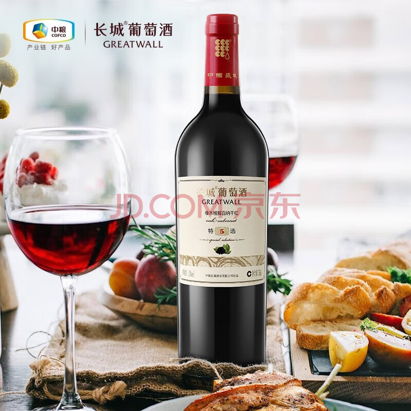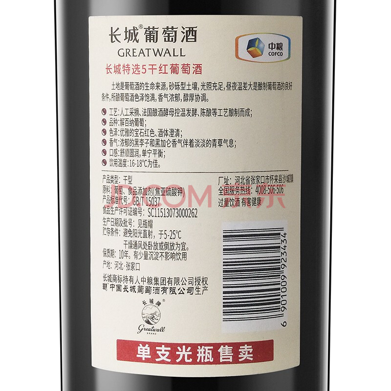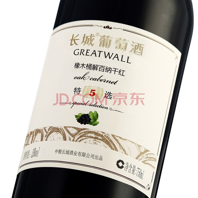 商品相册:长城特选5橡木桶解百纳干红葡萄酒750ml单瓶装红酒热门商品第1张/共8