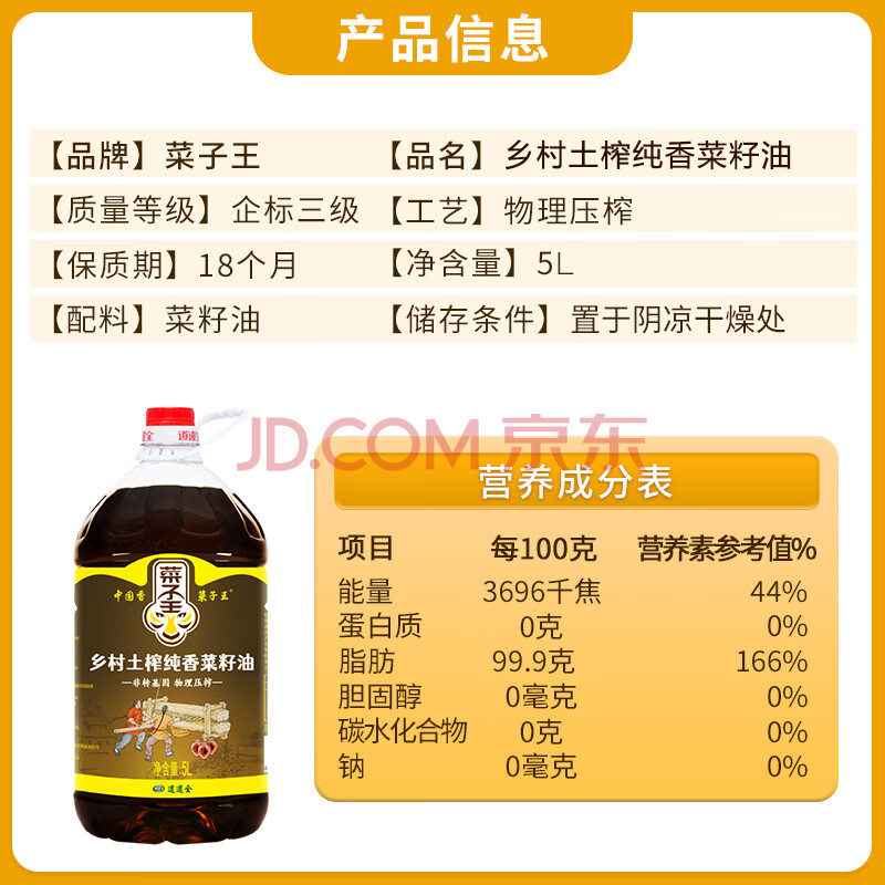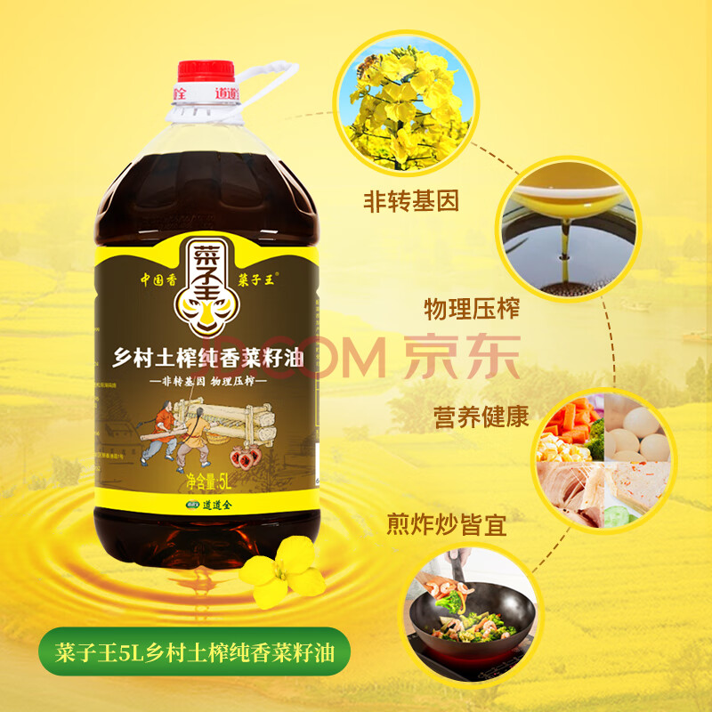 商品相册:菜子王【保真菜籽油】乡村土榨纯香菜籽油5L 四川风味 非转基因食用油第