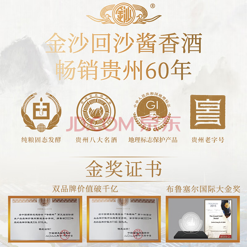 商品相册:金沙回沙酒 仁酱 酱香型白酒 53度 2500ml(2.5L)大坛子酒 纯粮食酒第