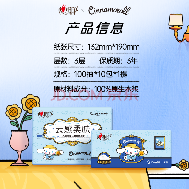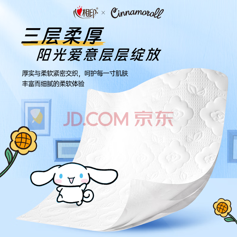 商品相册:心相印抽纸 纸巾 云感三丽鸥大耳狗系列 3层100抽*10包S码纸巾 卫生纸第
