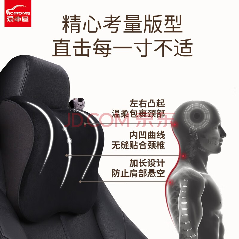 商品相册:爱车屋 ICAROOM 汽车头枕腰靠套装 记忆棉枕头腰垫车载车用座椅颈枕靠垫腰靠NB-662/632KT-B 经典黑第