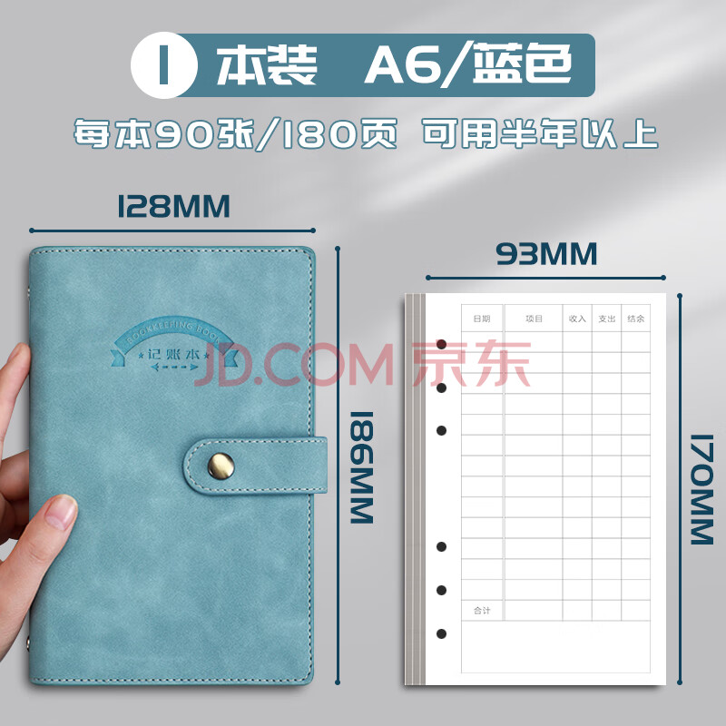商品相册:法拉蒙 A6记账本日记账随身家庭理财笔记本收入支出明细记账本便携多功能记账簿 A6蓝色第