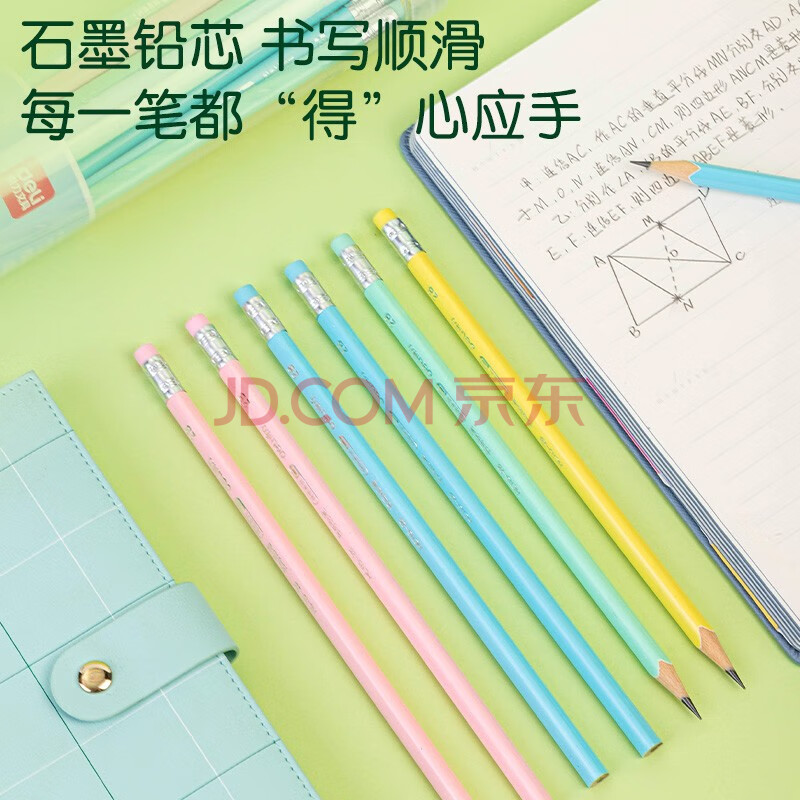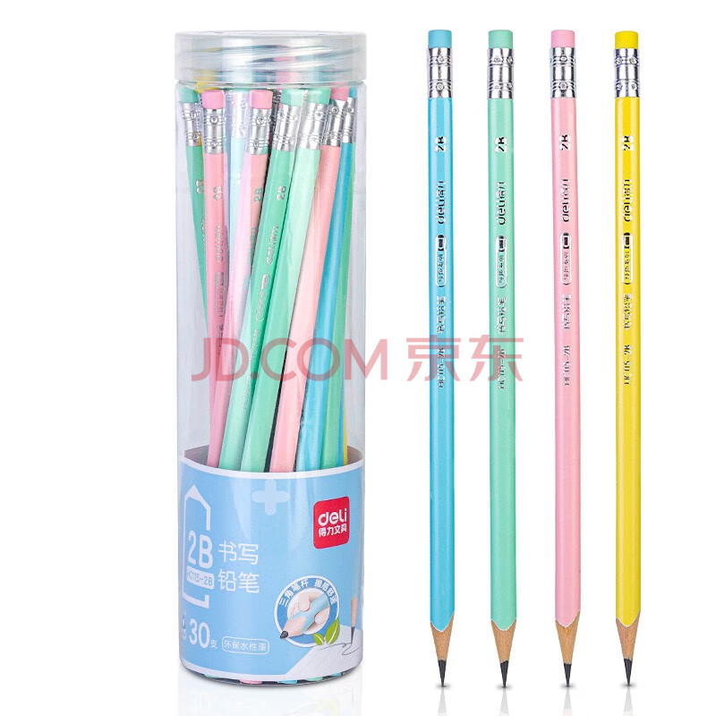 商品相册:得力(deli)2B书写铅笔学生铅笔考试铅笔30支/桶马卡龙色三角笔杆绘画涂鸦HC115-2B学生开学文具第