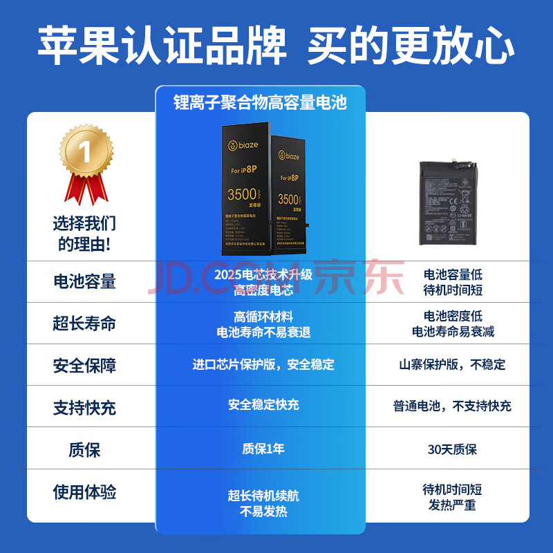 商品相册:毕亚兹适用于苹果8plus电池 iphone8plus电池大容量3500mah毫安内置聚合物手机电池自主更换支持快充DC-8第