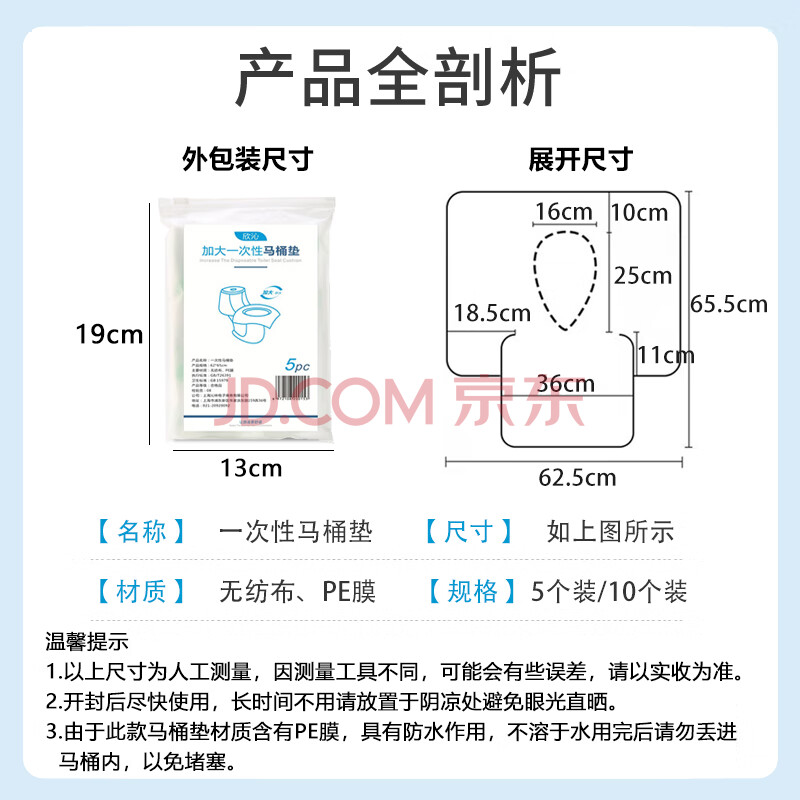 商品相册:欣沁一次性马桶垫全包裹双层加大加长马桶套印花独立装无纺布 5个装第