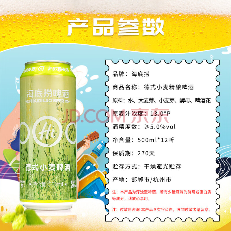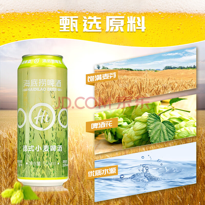 商品相册:海底捞德式小麦 精酿啤酒 500ml*12听 整箱装 国产踏春送礼踏春送礼第