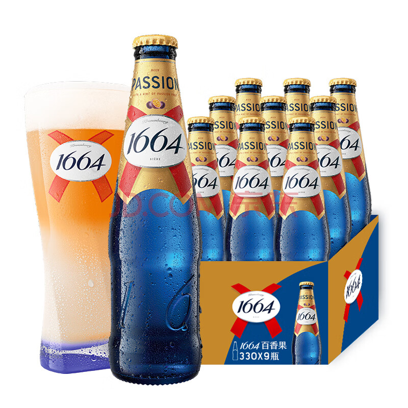 商品相册:kronenbourg 1664百香果味啤酒330ml*9瓶小麦风味精酿整箱装啤酒京东自营踏青出游第