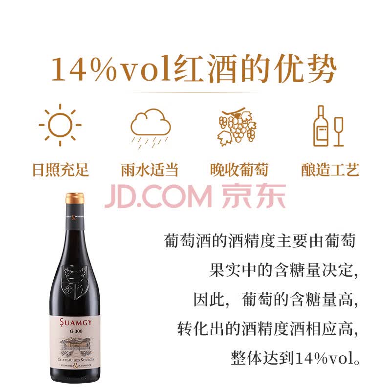 商品相册:圣芝(suamgy)G300罗纳河谷村庄级AOC干红葡萄酒 750ml 单瓶装 法国进口红酒第