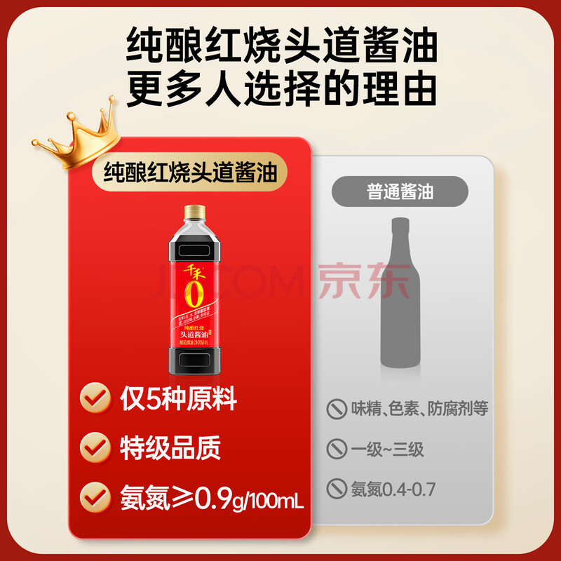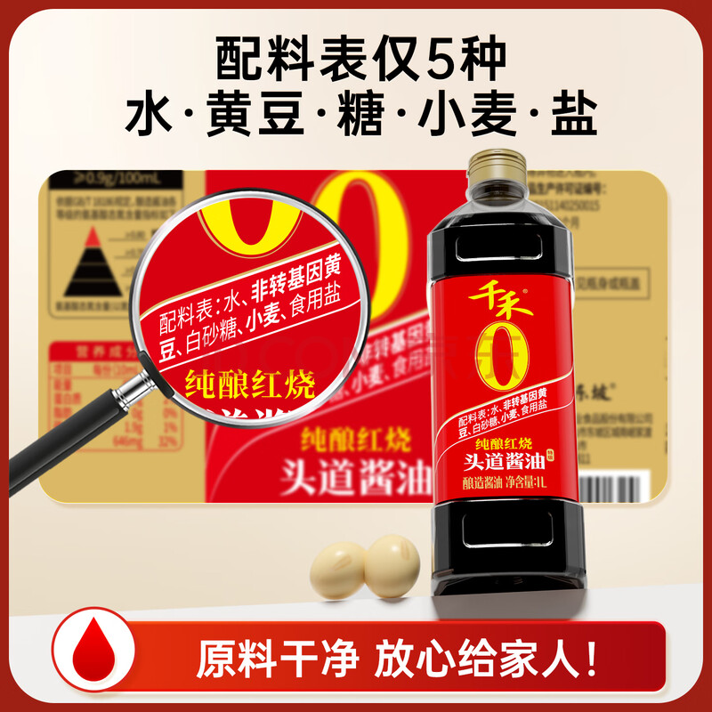 商品相册:千禾 纯酿红烧 酿造酱油 1L【0添加 特级酱油】头道酿造提鲜上色第