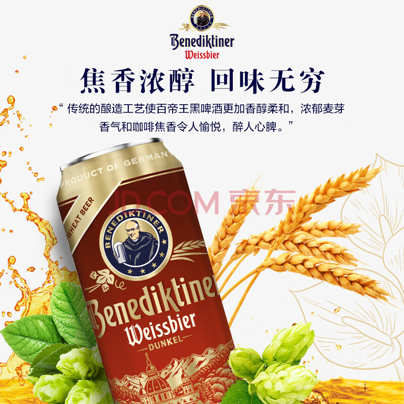 商品相册:百帝王(Benediktiner)【送礼自饮】小麦黑啤酒 修道院经典500ml*24听整箱德国进口第