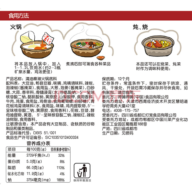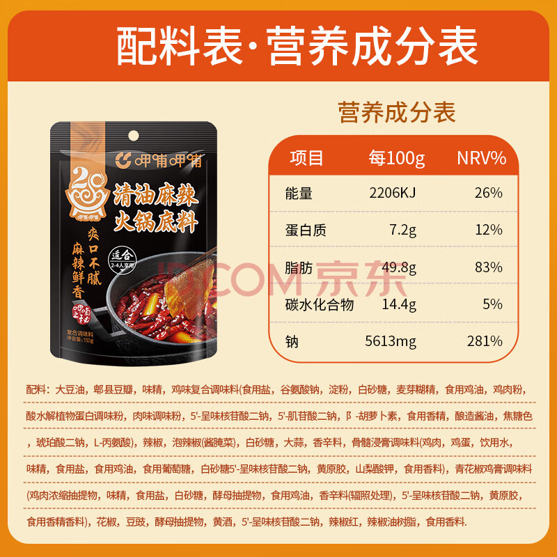 商品相册:呷哺呷哺 清油麻辣火锅底料150g 火锅食材冒菜麻辣烫中辣调味料第