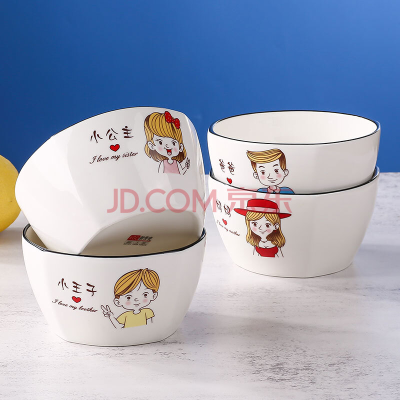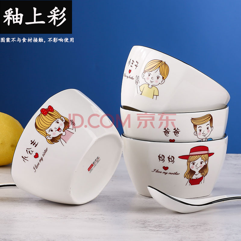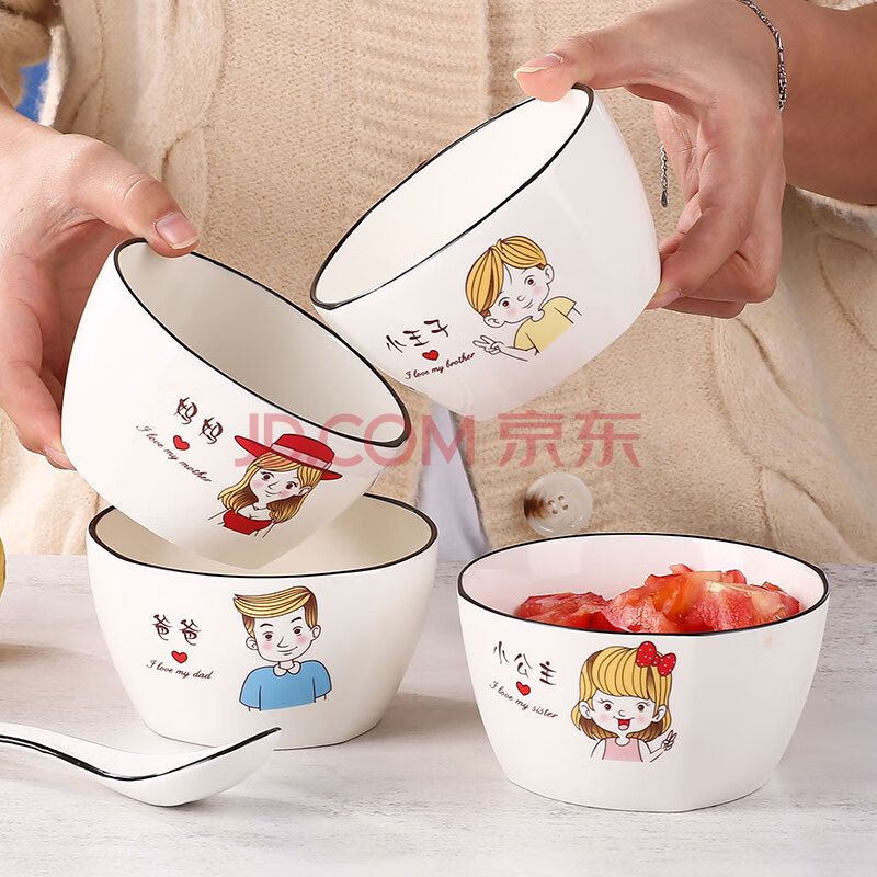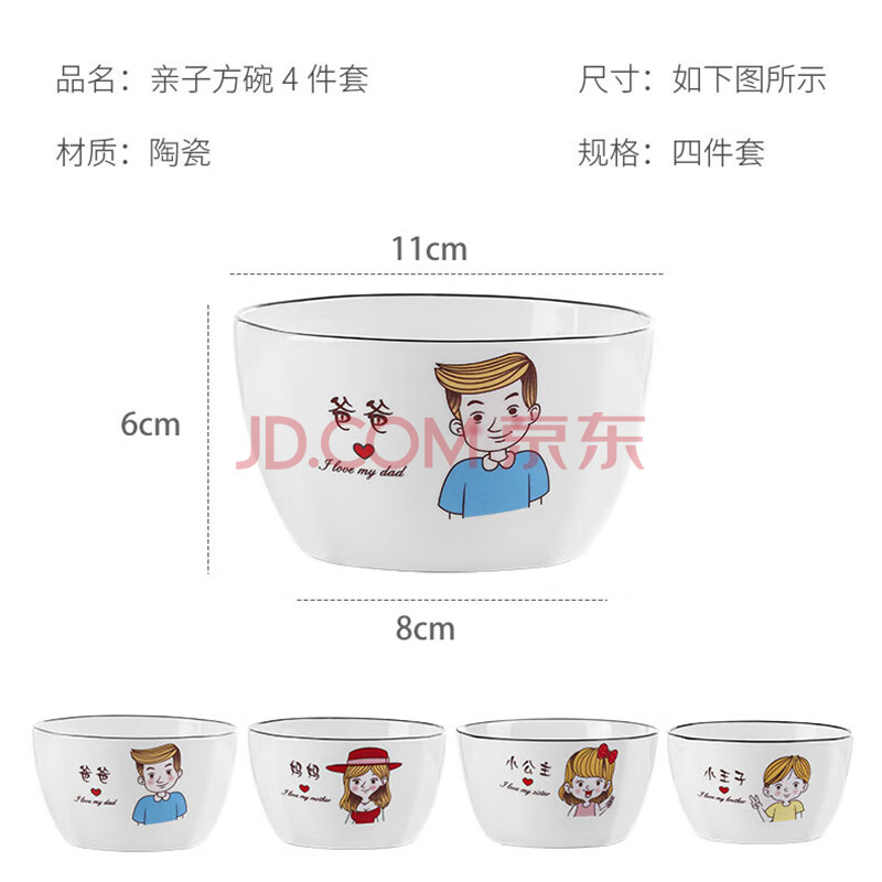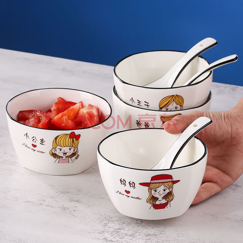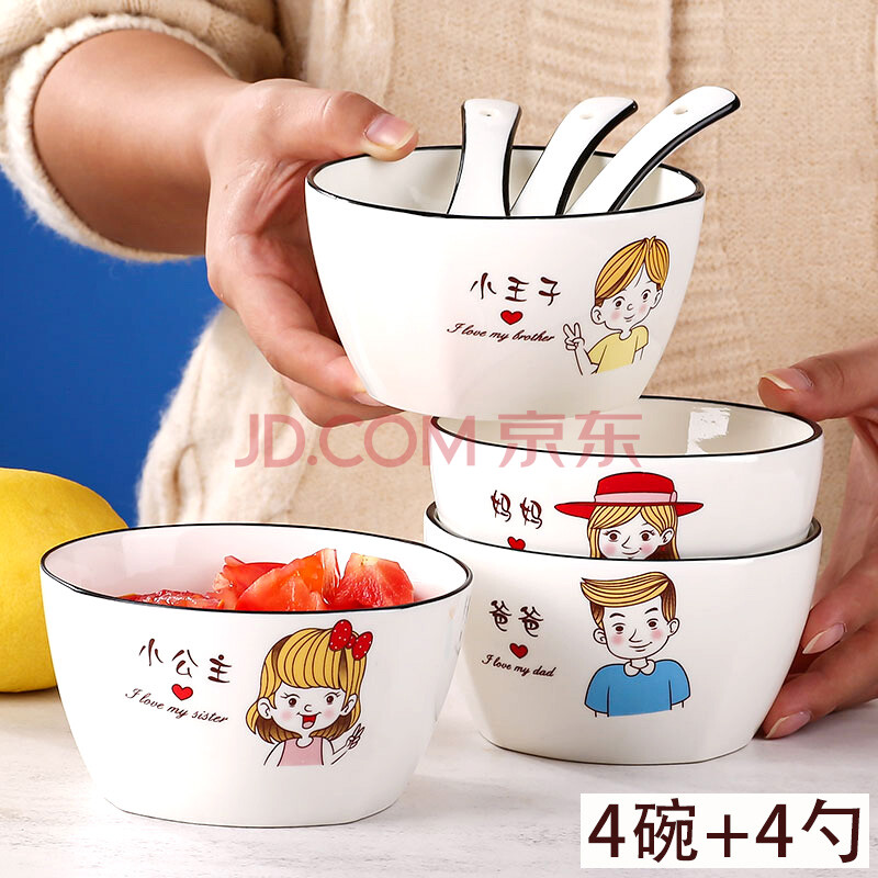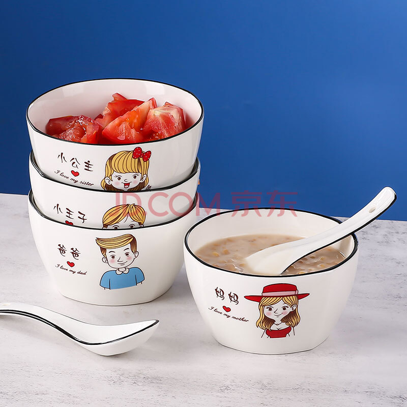 商品相册:餐将军 亲子碗套装家用餐具汤勺一家四口陶瓷方碗4件套【配套勺】第
