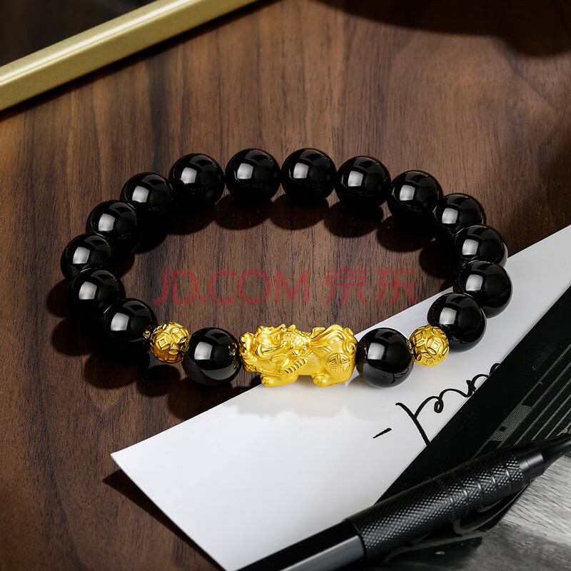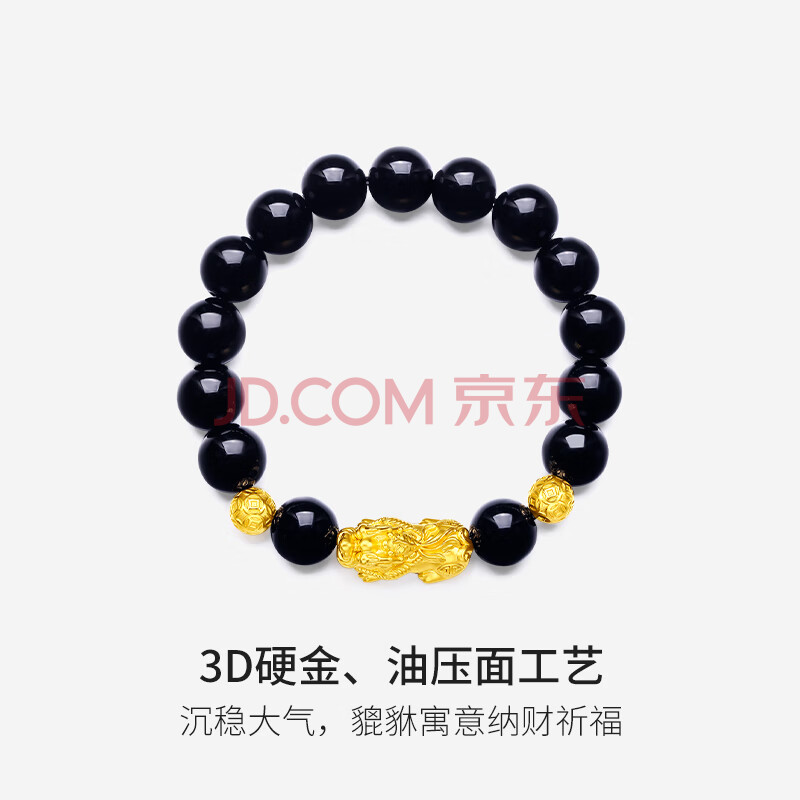 商品相册:周六福财运貔貅黄金转运珠男玛瑙手链生日礼物ADMN193450 金重约2.77g第